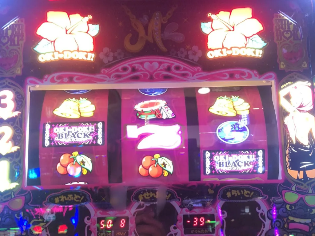 沖ドキ!ブラックの島を物色していると、前日天国中に閉店を迎えている台を発見。