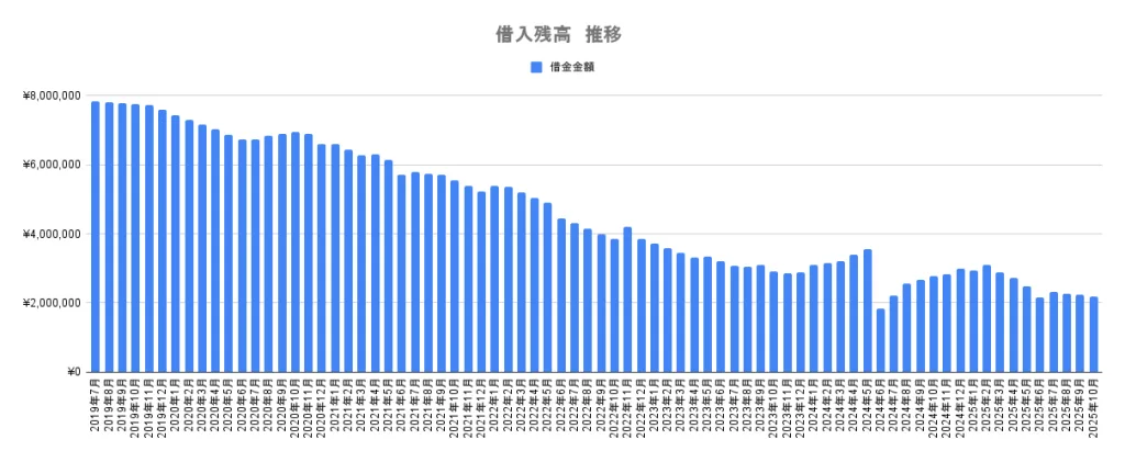 ピーク時(2019年7月)と現在の借金総額を比較したのがこちら。
