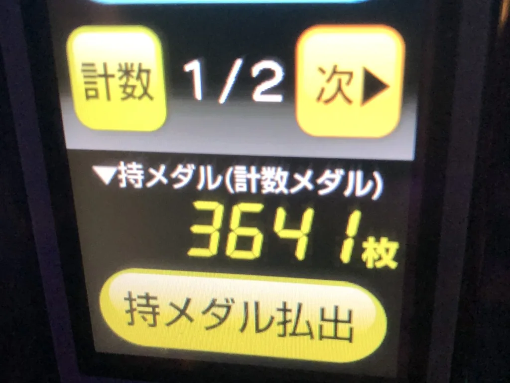(それにしても、貯メダルの再プレイで50枚払い出すたびに、手数料3枚取られるの納得がいかないですけどね)