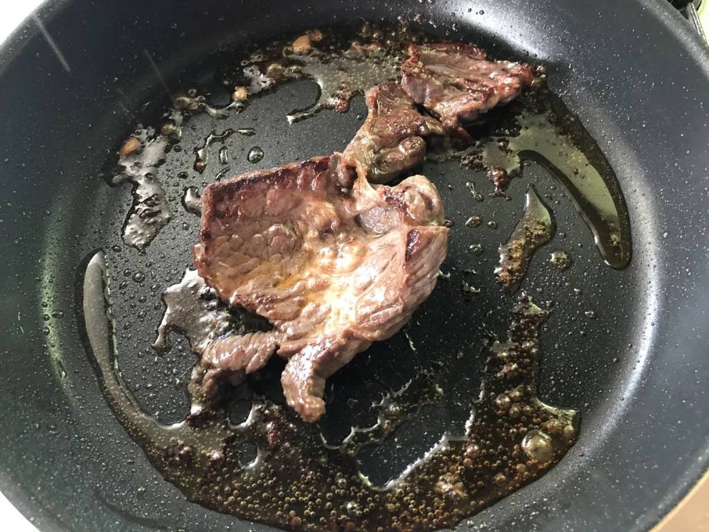 心地良い焼き音を聞きながら、肉の両面を焼いていきます。